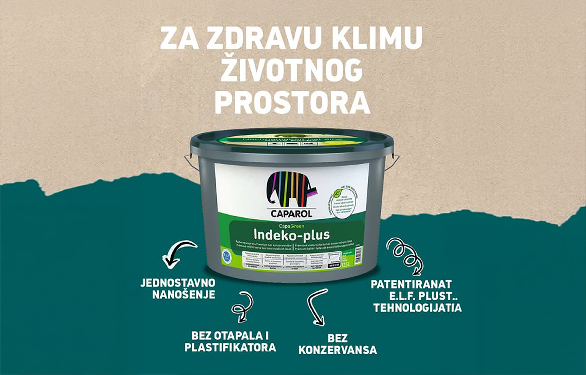 Indeko-plus jedna je od najpoznatijih Caparol boja i s razlogom se smatra standardom u kategoriji zdravih unutarnjih premaza. Riječ je o vrhunskoj disperzivnoj boji koja kombinira iznimnu pokrivnost s minimalnim utjecajem na kvalitetu zraka u prostoru.