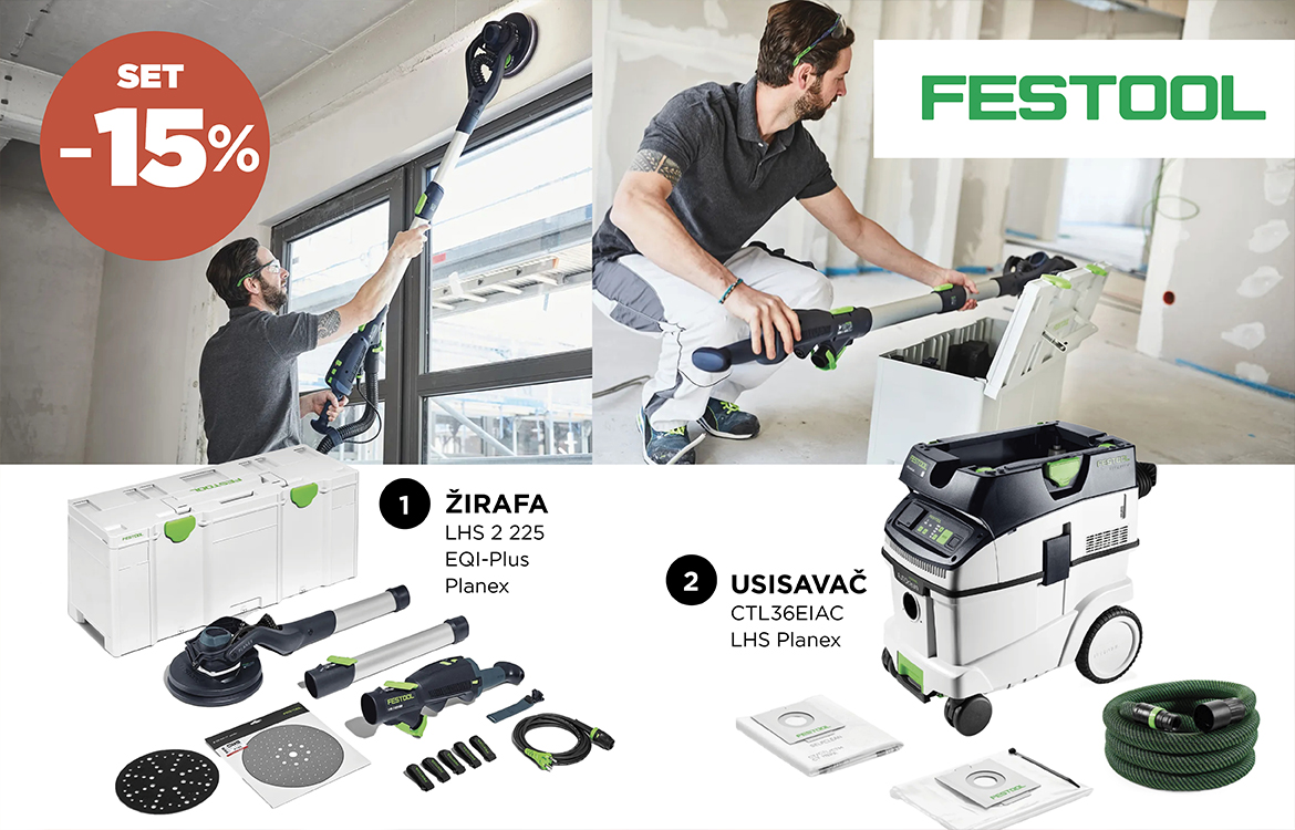 Kombinacija: Festool CTL 36 E AC-LHS Planex + Festool LHS 2 225 EQI-Plus