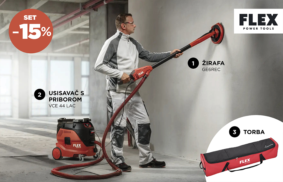 Ovo je idealan set za majstore koji rade adaptacije stanova i kuća, za obrtnike kojima je potrebna kompaktnost i lakoća, te za sve koji žele profesionalni rezultat bez korištenja glomazne industrijske opreme. FLEX sustav nudi odličan balans snage, ergonomije i mobilnosti.