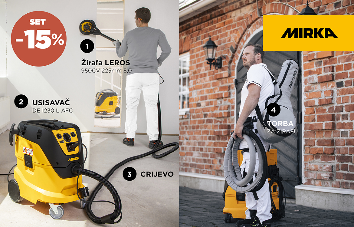Mirka je brend koji se posebno fokusira na obradu površina i minimalnu količinu prašine. U njihovom pristupu naglasak je na ergonomiji, preciznosti i zdravijem radnom okolišu. Alati i usisavači projektirani su da rade u savršenom tandemu.
